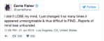 lebelinoria Uncategorized February 26, 2018December 5, 2018 1 Minute agentromanoffsir: some carrie fisher tweets to brighten your day Share this: Click to share on X (Opens in new window) X Click to share on Facebook (Opens in new window) Facebook Like Loading... Related Published by lebelinoria View all posts by lebelinoria Published February 26, 2018December 5, 2018
