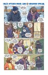 Yet Ro and Ted arranged everything so the conversations flow and are sensibly grouped, all the “acting” is fantastic, and then Dee laid on top these beautiful, almost fairytale colours – look at the subtle work, the blush in Henry’s cheeks, Frank’s five o-clock shadow, the shine of the wine bottle’s glass surface, the light texturing in the backgrounds… and of course the snow! This is some first-class illustration work on an incredibly hard script. (I fear Ro and Ted always get me at my worst – my very formalist script for them in the 24 Panels anthology was no cakewalk either. (The problem is, they’re just so damn good at it… check out their work on the Image comic Crowded!)