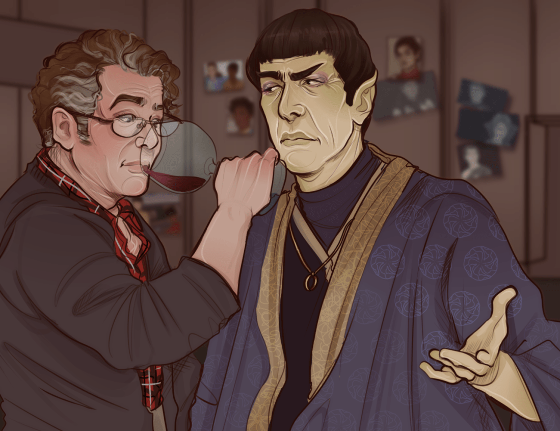 Sarek’s just like “my son….now you understand how I feel when your mother insists that we wake up at dawn to view the sunrise together…it is completely illogical and yet….every second I spend in her presence is a gift”